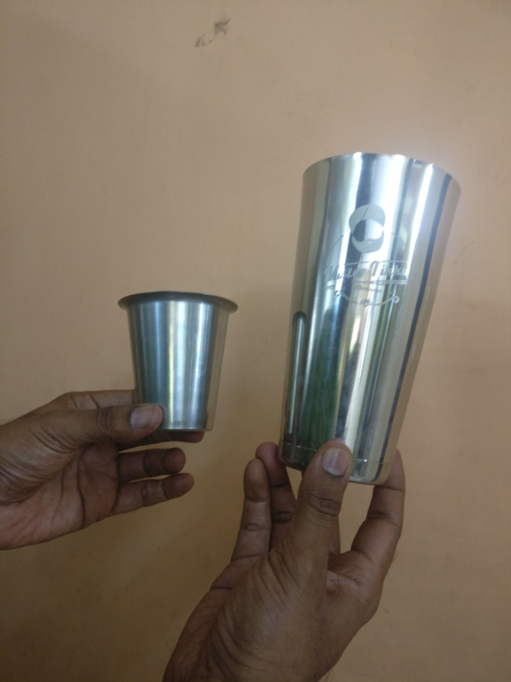 A very unique gift came via courier today. A Punjabi Lassi Long Tumbler. Who else but a foodie can think of a gift like this one! Below is a comparison of a South Indian glass versus a Punjabi glass!