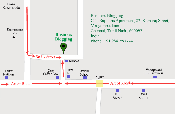 If you are coming from the Airport or Railway station, take the ‘Pre-Paid’ cab. Tell them you have to go to Virugambakkam. (it is pronounced, viru-gum-back-um). The landmark you can use is Avichi School on Arcot road, which is relatively close to my home. Next to Avichi school is Pizza Hut. You need to take the right after Pizza Hut, which leads you to Kamaraj Street. After 100 meters, the road takes a ‘T’ junction where it splits into left and right. My apartment is exactly at the ‘T’ junction. Its called ‘Raj Paris Pancharathinam’ apartment. You’ll find two big round lamp at the gate. It’s opposite to an ‘amman’ temple.