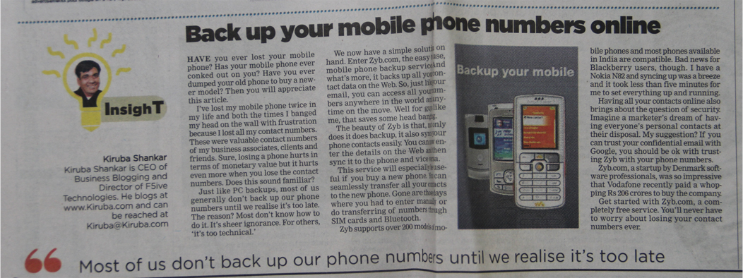 Having all your contacts online also brings about the question of security. Imagine a marketer’s dream of having everyone’s personal contacts at disposal. My suggestion? If you can trust your confidential email with Google, you should be ok with trusting Zyb with your phone numbers. Zyb.com, a startup by Denmark software professionals, was so impressive that Vodafone recently paid Rs 206 crores to buy the company.
